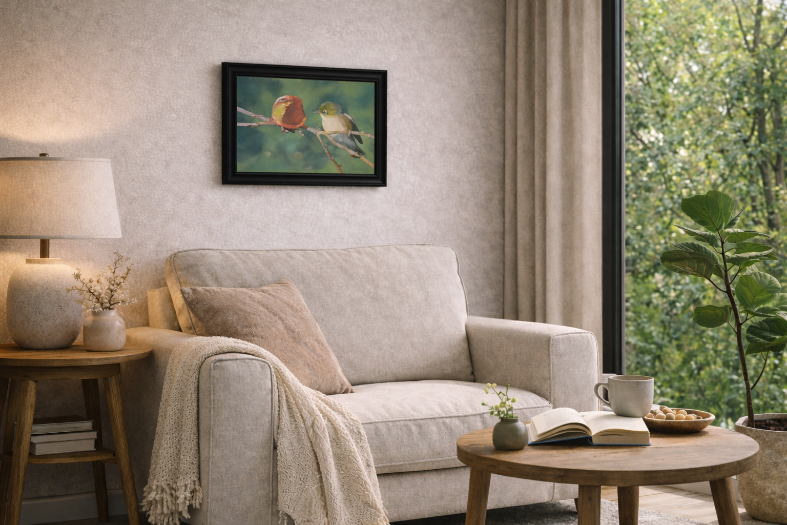 Framed artworks arrive ready to hang straight from the box